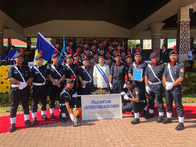 ISNIN, 8 OKTOBER - Kontinjen Polis Bantuan Universiti Malaysia Sabah (UMS) meneruskan kecemerlangan dalam pertandingan kawad sempena Istiadat Perbarisan Sambutan Perayaan Hari Jadi Rasmi Ke-65 Tuan Yang Terutama Yang di-Pertua Negeri Sabah apabila muncul naib johan bagi kategori Jabatan Kerajaan Berpakaian Seragam Rasmi dalam acara yang diadakan di Padang Merdeka, Kota Kinabalu baru-baru ini.