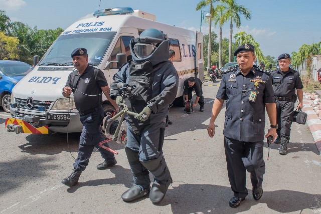 KHAMIS, 12 APRIL - Seramai 75 kakitangan Universiti Malaysia Sabah (UMS) dan 23 pelajar Kelas al-Quran dan Fardhu Ain (KAFA) UMS mengikuti Latihan Kecemasan Ancaman Bom anjuran Pusat Islam UMS (PIUMS) dengan kerjasama Pasukan Pemusnah Bom, Polis Diraja Malaysia (PDRM) di Masjid UMS, kelmarin.