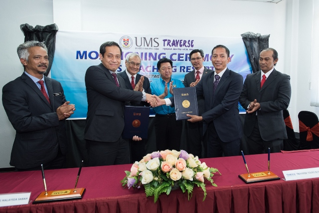 RABU, 14 MAC 2018 - Universiti Malaysia Sabah (UMS) bakal memiliki ‘Teaching Resort’ dalam kampus hasil pemeteraian Memorandum Perjanjian (MoA) bersama Traverse Tours Sdn. Bhd, menjadikannya sebagai universiti pertama di Malaysia yang akan menyediakan kemudahan tersebut.