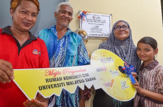 ISNIN, 12 FEBRUARI – “Syukur alhamdulillah dan saya sangat gembira kerana Universiti Malaysia Sabah dapat bagi rumah kepada saya,” kata penerima rumah komuniti projek tanggungjawab sosial korporat (CSR) UMS, Hamidah Isa dari Kg. Blok 31, Tawau kelmarin.