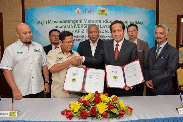 RABU, 29 NOVEMBER – Memorandum Perjanjian (MoA) antara Universiti Malaysia Sabah dan Hafiz Farm Sdn Bhd, sebuah syarikat tempatan berasaskan pertanian dan penternakan yang ditandatangani kelmarin memfokuskan penerokaan terhadap penyelidikan rumput napier termasuk Napier Pakchong untuk penghasilan makanan haiwan ternakan.