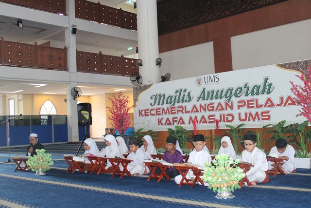 JUMAAT, 17 NOVEMBER – Seramai 70 orang pelajar Kelas Al-Quran dan Fardhu Ain (KAFA) sesi 2017 diraikan dalam satu Majlis Anugerah Kecemerlangan Pelajar KAFA Masjid UMS 2017 anjuran Pusat Islam Universiti Malaysia Sabah (PIUMS)