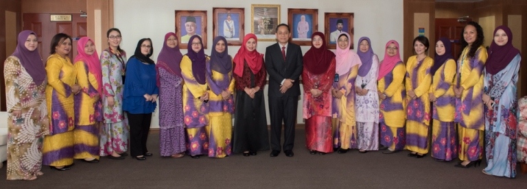 WEDNESDAY, 22 AUGUST – The Supreme Council Members of the Housewives and Women Staff Club (KESUMBA) Universiti Malaysia Sabah paid a courtesy call to the Vice-Chancellor, Prof. Dr. D Kamarudin D Mudin at the Chancellery Building, UMS, recently.