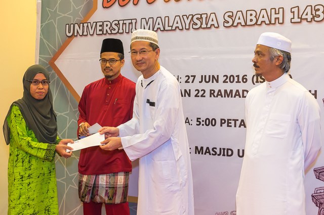 SELASA, 28 JUN - Naib Canselor Universiti Malaysia Sabah (UMS), Prof. Datuk Dr. Mohd Harun Abdullah bersama-sama pegawai utama dan kanan universiti telah menghadiri majlis berbuka puasa bersama kakitangan dan pelajar UMS di Masjid UMS semalam.
