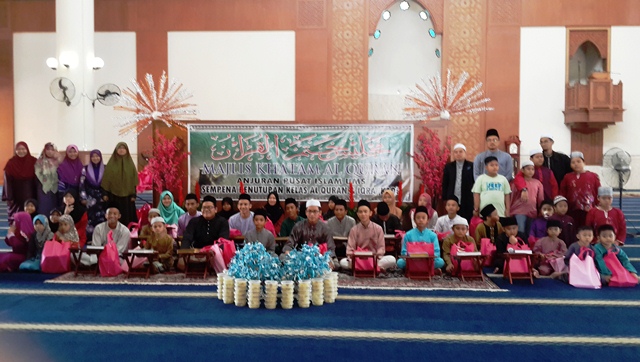 JUMAAT, 18 DISEMBER – Majlis Khatam Al-Quran Sempena Penutupan Program Kelas al-Quran dan Iqra 2015 Anjuran Pusat Islam Universiti Malaysia Sabah (PIUMS) mendapat sambutan menggalakkan daripada anak-anak kakitangan UMS dan masyarakat luar. Hampir 70 orang peserta yang dibimbing tenaga pengajar dari Sek. Rendah Islam Al-Hafiz, Tuaran, Ustaz Junaidi Jenny turut serta pada majlis tersebut.