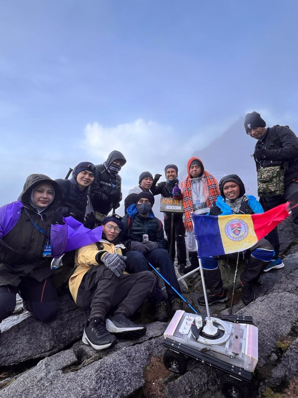 Lebih menarik, Kasim yang tiba di puncak gunung kira-kira jam 6 pagi bersama-sama sekumpulan pelajar dari Kelab Robotik UMS yang melakar sejarah dengan membawa robot ciptaan mereka yang boleh bergerak di permukaan tidak rata untuk mengibarkan bendera UMS di puncak Gunung Kinabalu.
