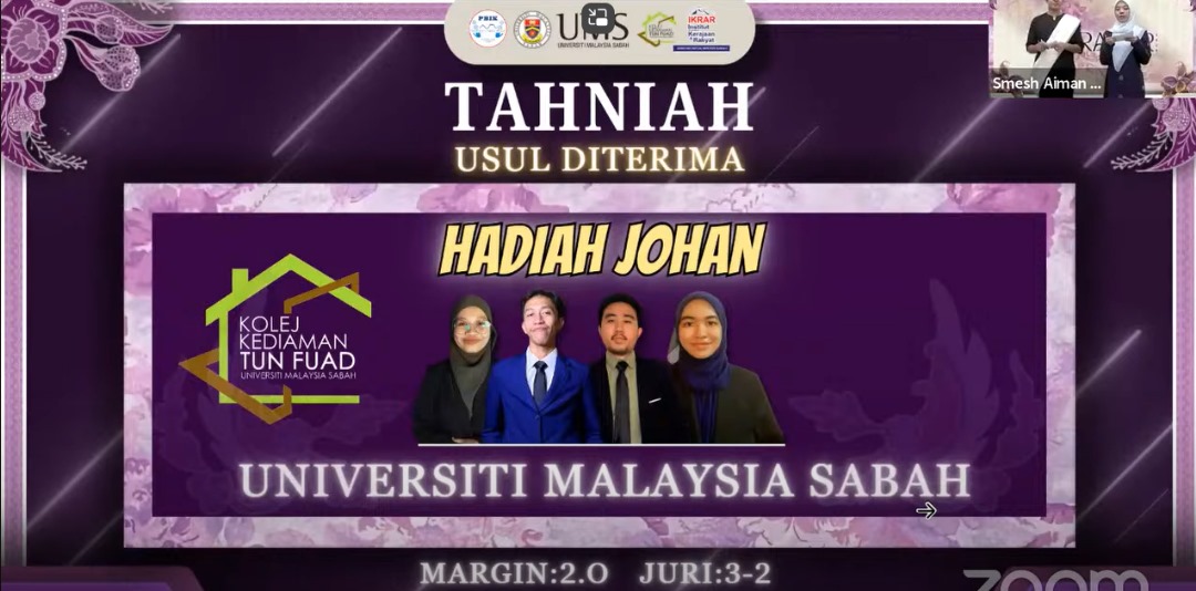 “Syabas dan tahniah diucapkan kepada kedua-dua pasukan pendebat iaitu Universiti Islam Antarabangsa Malaysia (UIAM) Cawangan Pagoh dan pasukan pendebat KKTF yang juga telah mewakili UMS di peringkat akhir pertandingan DEBORA pada tahun ini.”