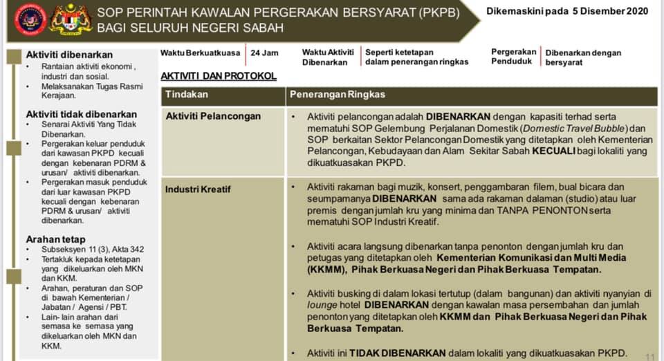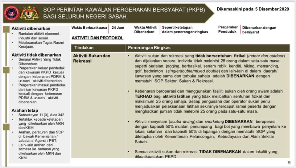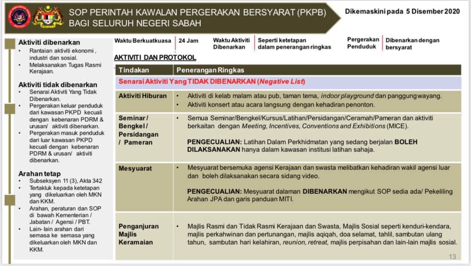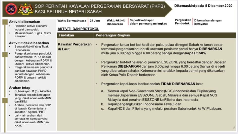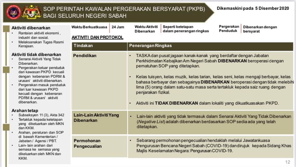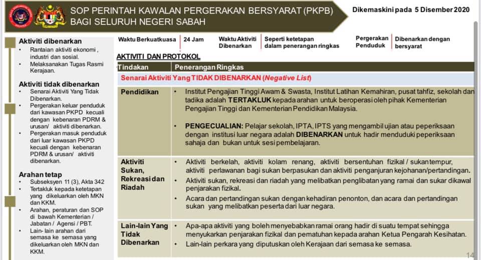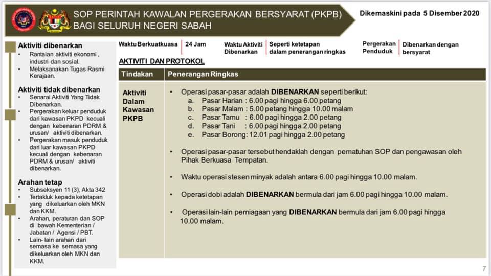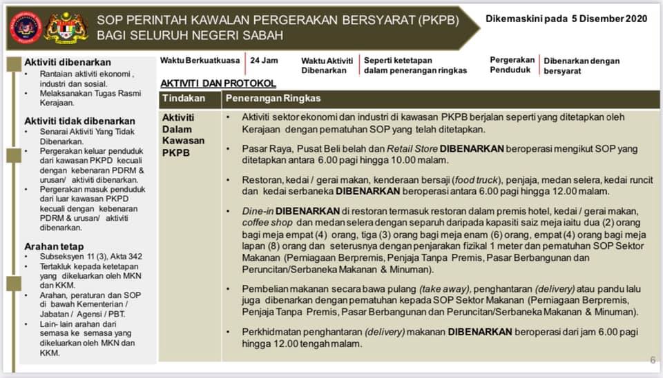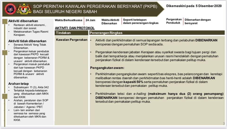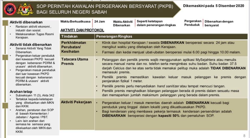 6 Disember 2020 - SOP Kawalan Perintah Kawalan Pergerakan Bersyarat (PKPB) Bagi Seluruh Negeri Sabah