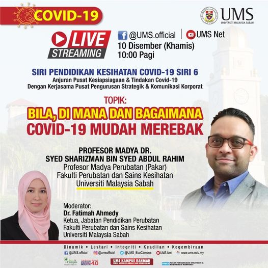 10 Disember 2020 - Siaran Secara Atas Talian " Bila, Dimana Dan Bagaimana Covid-19 Mudah Merebak "