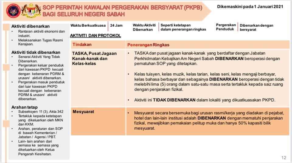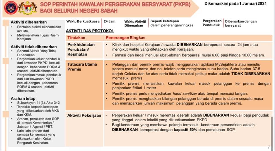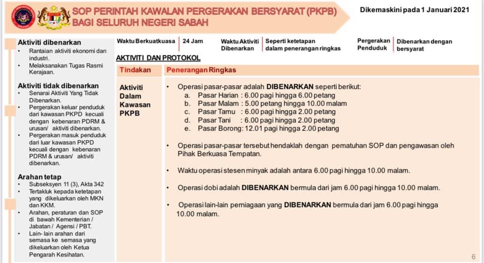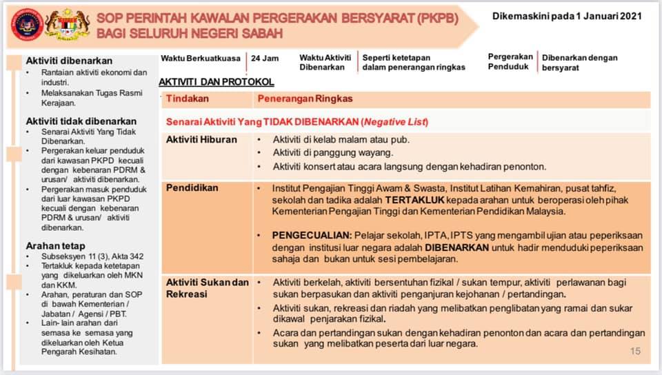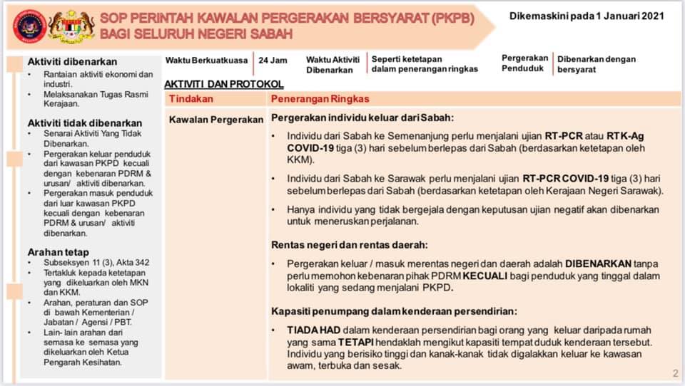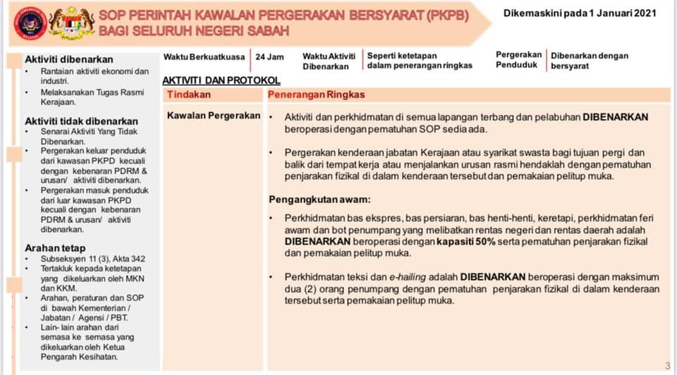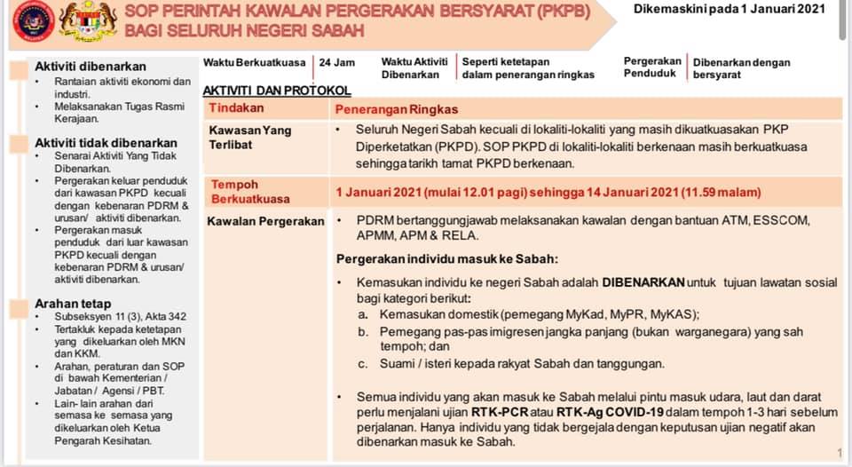1 Januari 2021 - SOP Perintah Kawalan Pergerakan Bersyarat (PKPB) Bagi Seluruh Negeri Sabah