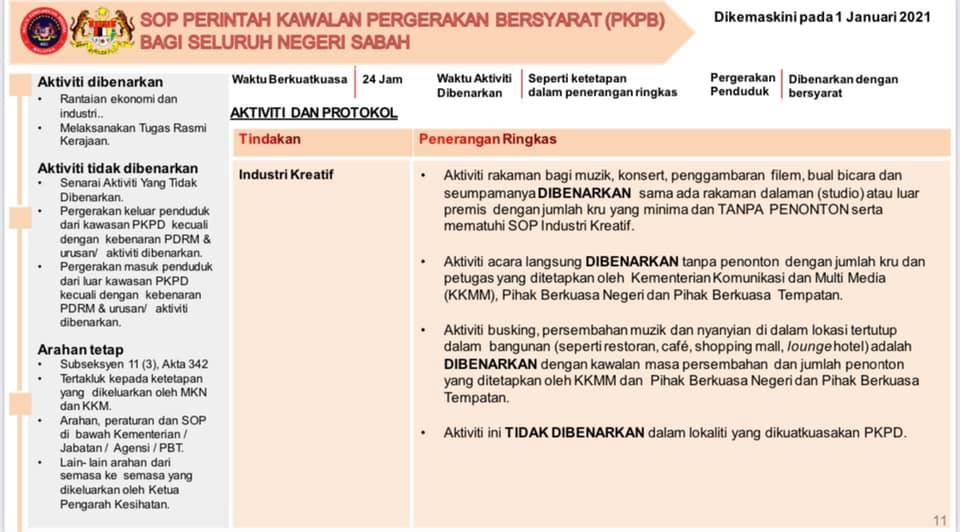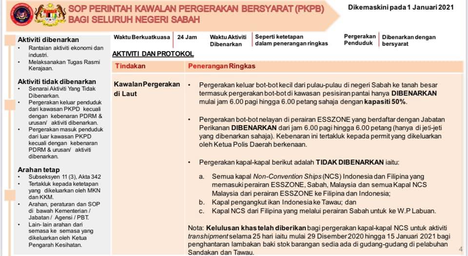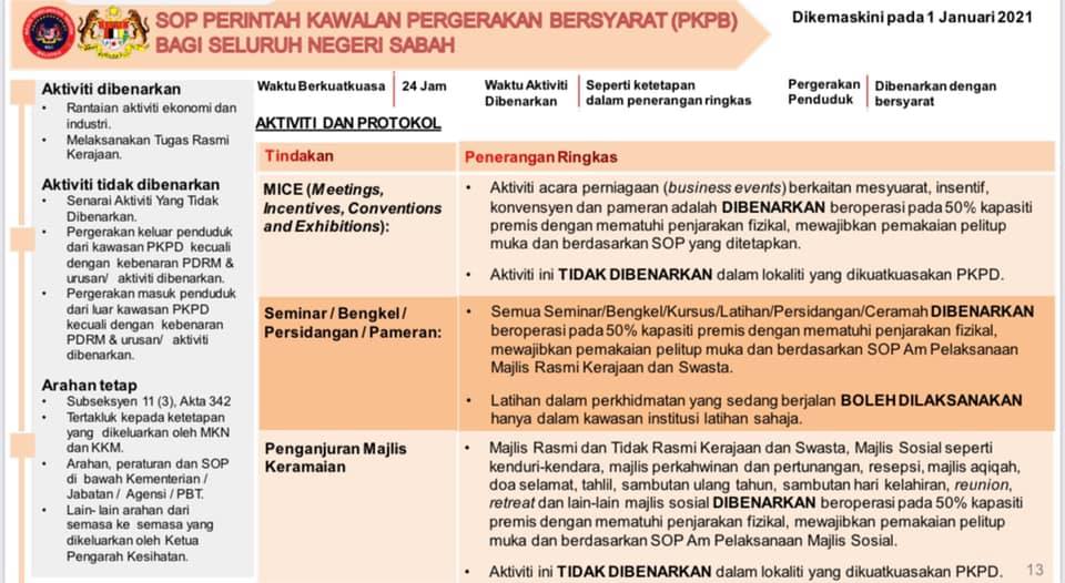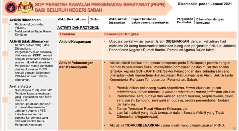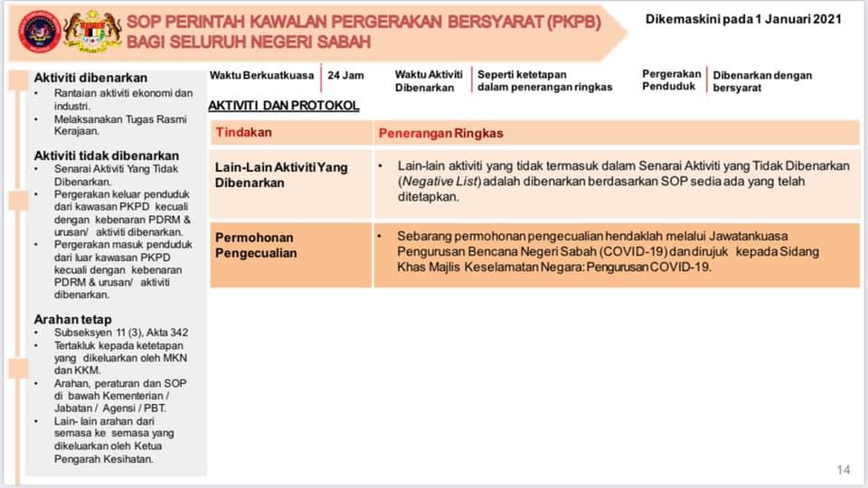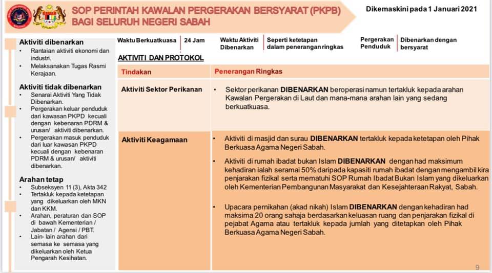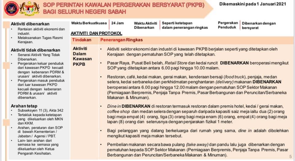 1 Januari 2021 - SOP Perintah Kawalan Pergerakan Bersyarat (PKPB) Bagi Seluruh Negeri Sabah