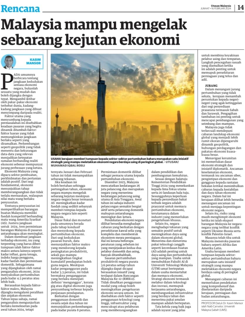 Malaysia juga tidak terkecuali mendepani cabaran landskap ekonomi global yang menjadi lebih rumit ekoran dipengaruhi dinamik geopolitik, hubungan perdagangan dan pakatan ekonomi kuasakuasa bĕsar.