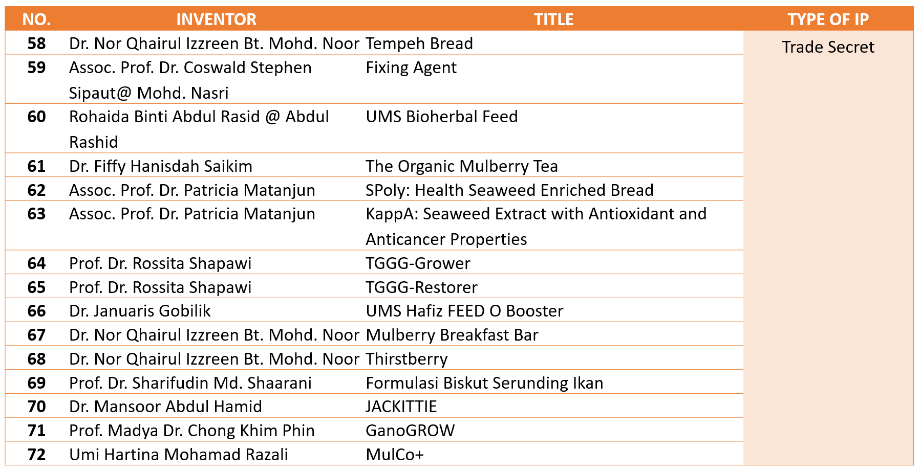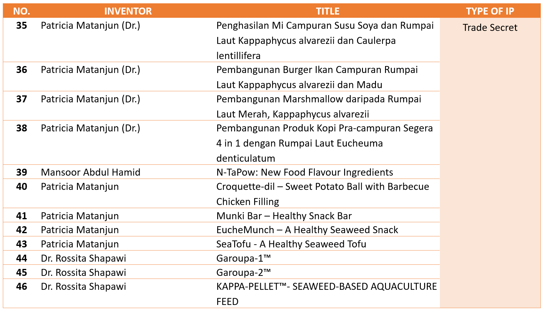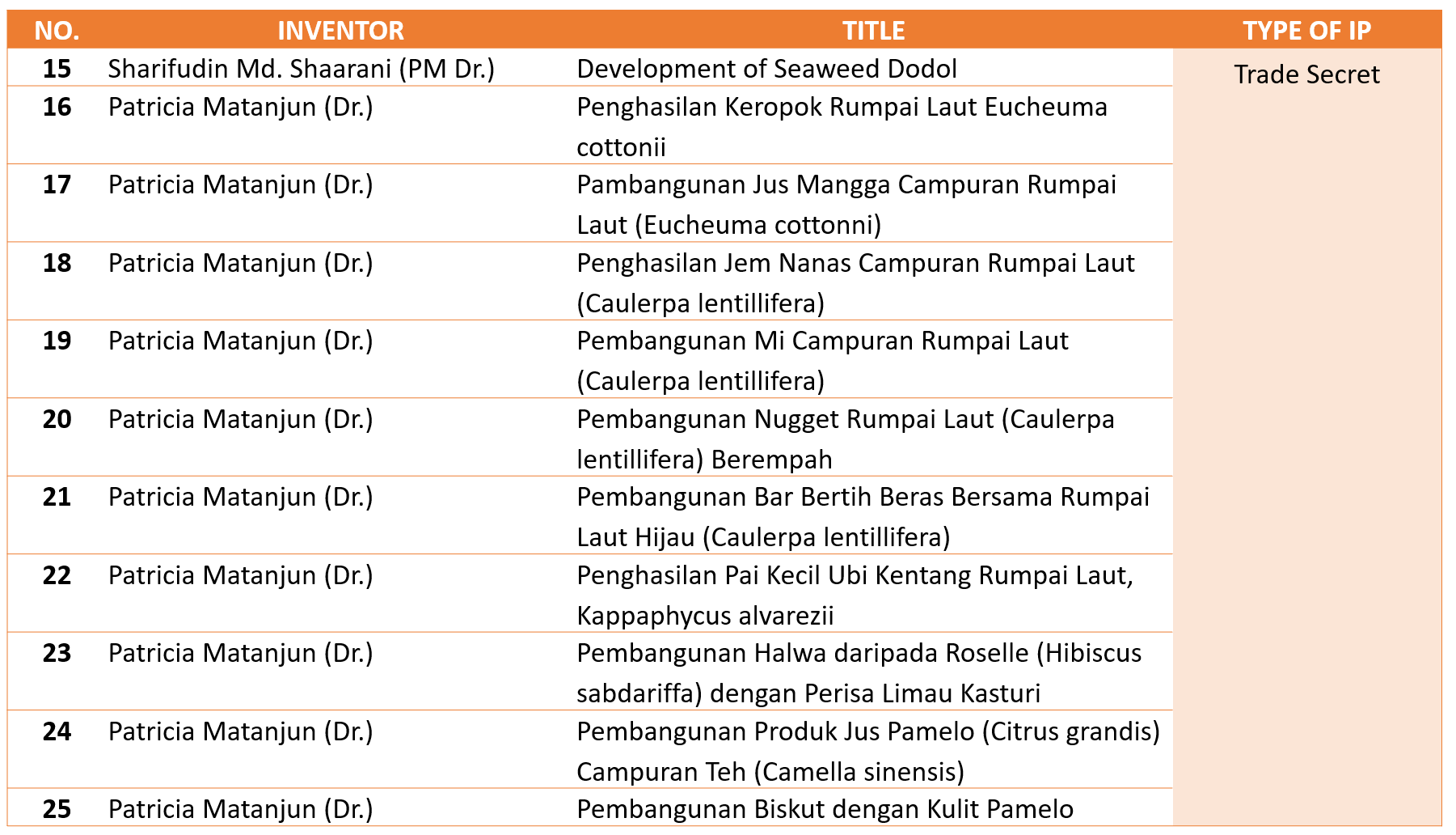 17 November 2020 Jumlah paparan: 2920 TRADE SECRET Cetak Emel DETAIL OF INTELLECTUAL PROPERTIESTRADE SECRET72 PRODUCTS OF TRADE SECRET