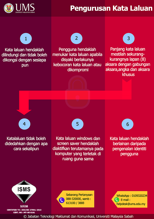 19 Oktober 2017 Jumlah paparan: 1458 PENGURUSAN KATA LALUAN Cetak Emel PENGUMUMAN DARIPADA: JABATAN TEKNLOGI MAKLUMAT DAN KOMUNIKASI, UMSSUBJEK: PENGURUSAN KATA LALUAN