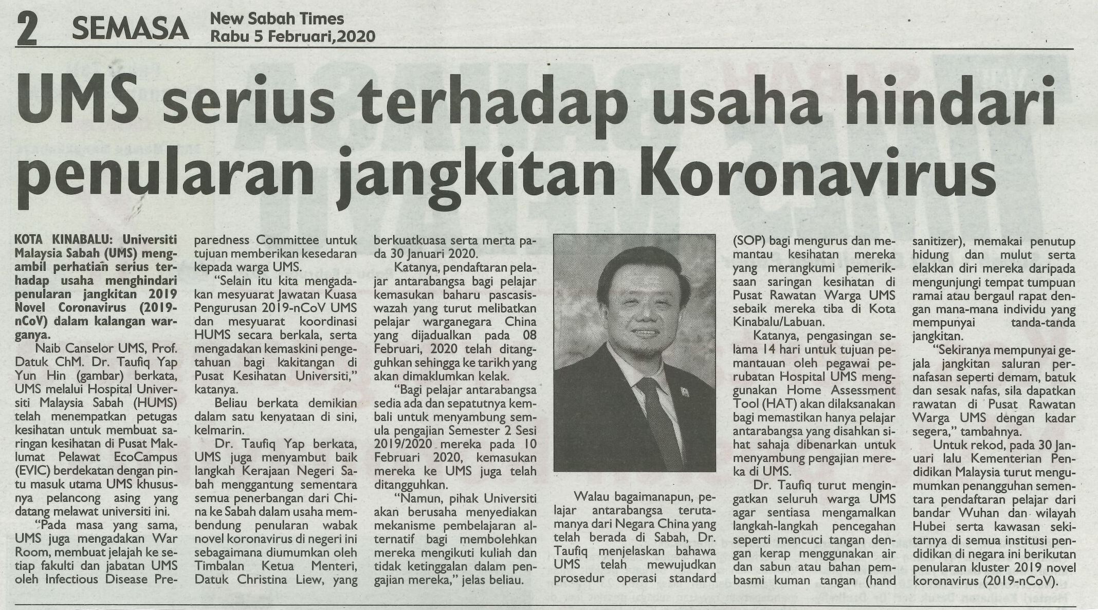 NEW SABAH TIMES, 5 FEBRUARI 2020, MS 2