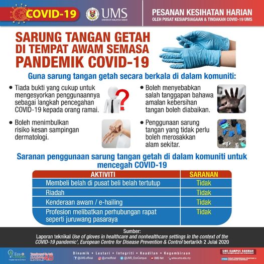 7 Disember 2020 -" Sarung Tangan Getah Di Tempat Awam Semasa Pandemik Covid-19 " Pesanan Kesihatan Oleh Pusat Kesiapsiagaan Dan Tindakan Covid-19 UMS