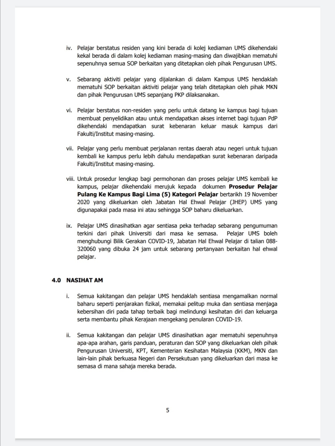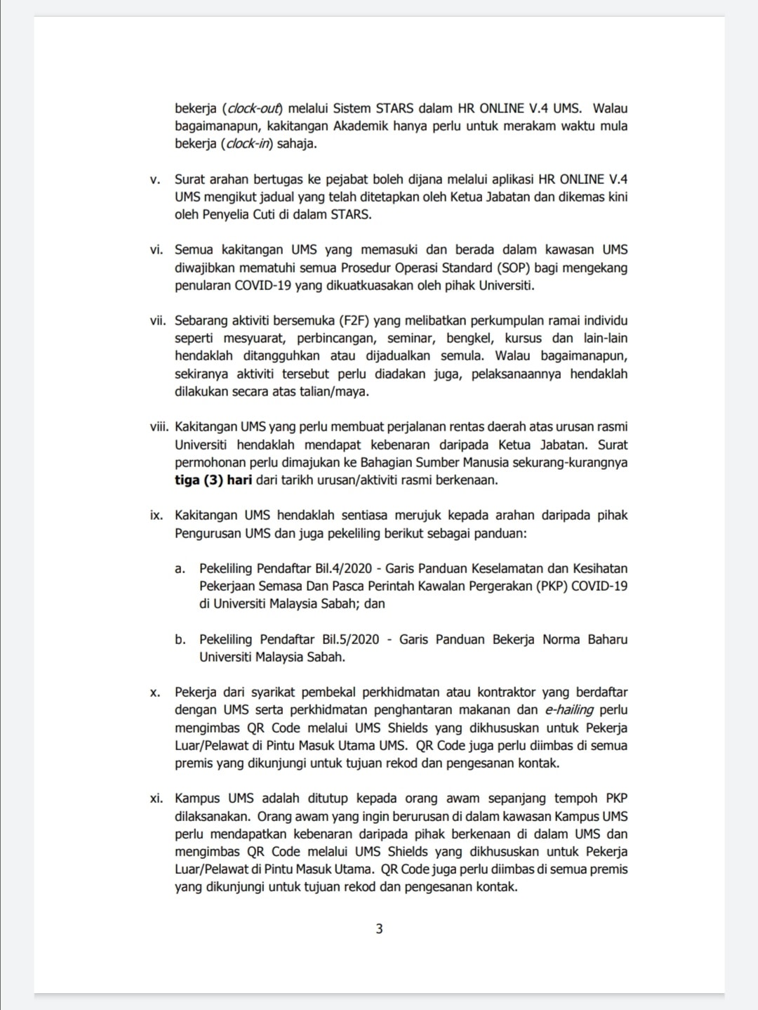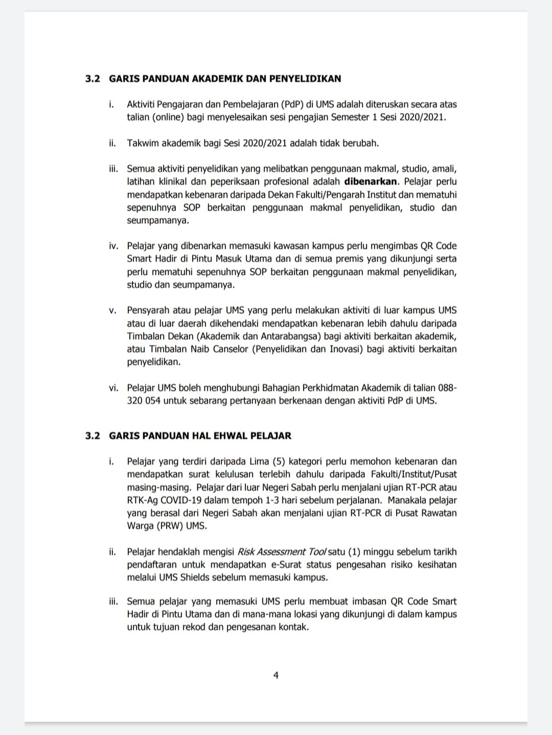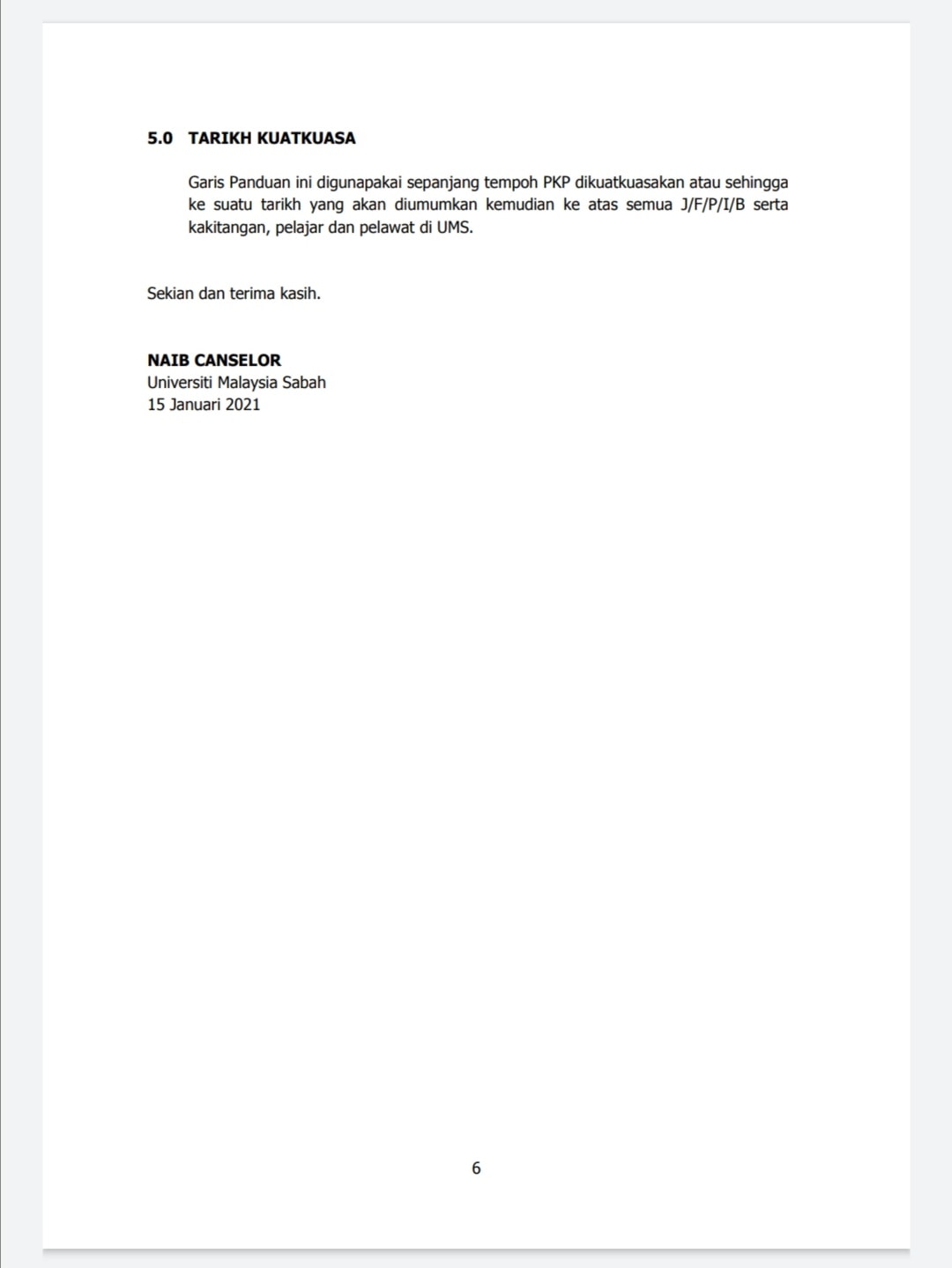 16 Jan 2021 - Garis Panduan Pengoperasian Pentadbiran, Akademik Dan Penyelidikan Serta Hal Ehwal Pelajar Di Universiti Malaysia Sabah Sepanjang Perintah Kawalan Pergerakan (PKP)
