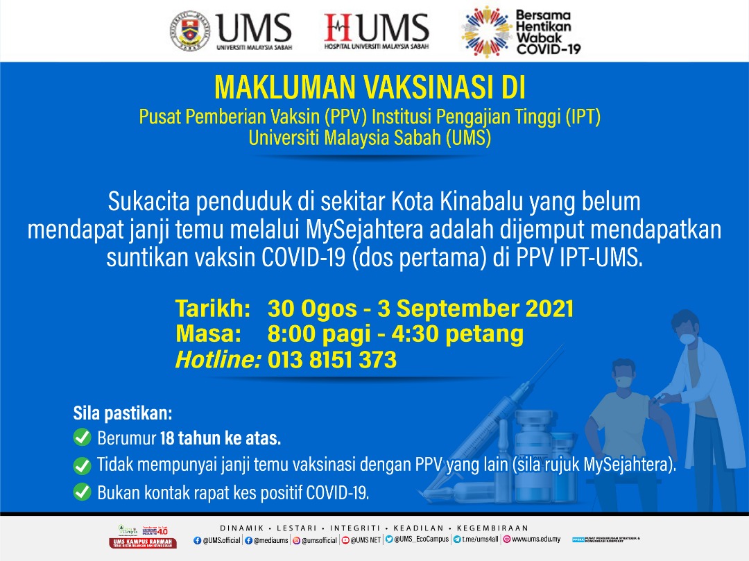 30 Ogos 2021 - Maklumat Vaksinasi Di PPV IPT-UMS